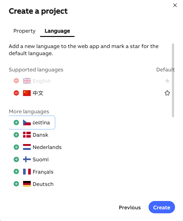 1.  Create the project and configure its multilingual settings.