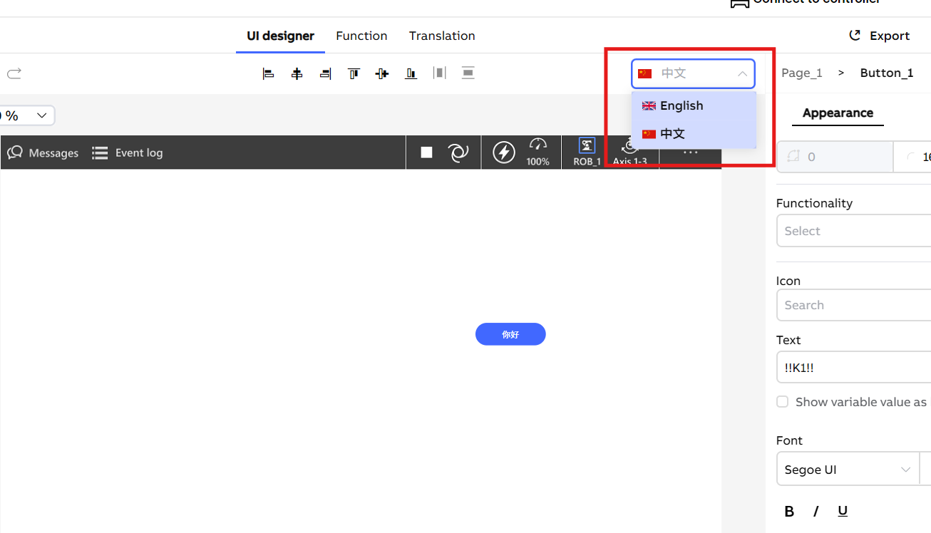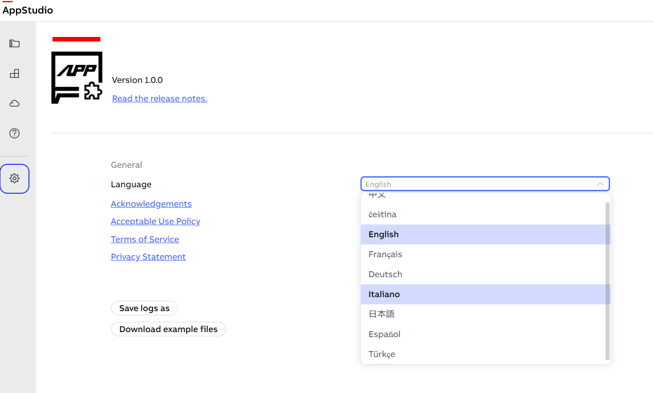 We also support switching the AppStudio software language, you can change your language setting refer to follow image.