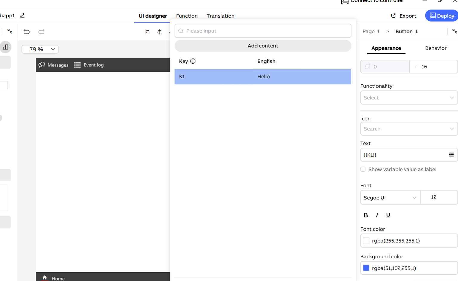 3. Bind the multilingual content to the text labels of the components and support previewing the multilingual effects.