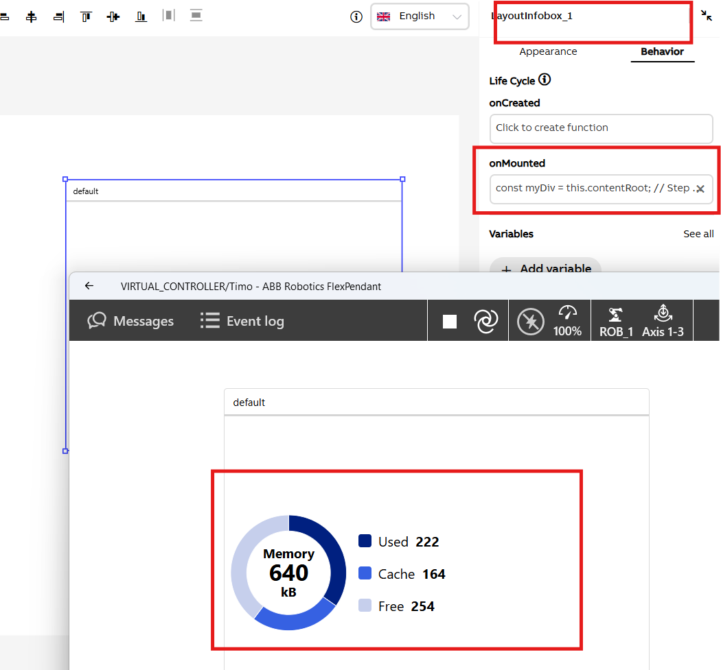 // Step 1: Get the container html element of the layoutinfobox component. const myDiv = this.contentRoot; // Step 2: Create pie chart base on FPComponents API. var myDonut = new FPComponents.Piechart_A(); myDonut.model = [ [222, 'Used' ], [164, 'Cache' ], [254, 'Free' ], ]; myDonut.topText = "Memory"; myDonut.centerText = "640"; myDonut.bottomText = "kB"; myDonut.size = 150; // Step 3: Attach the pie chart to layoutinfobox. myDonut.attachToElement(myDiv);